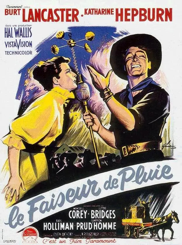 骗子来到炎热的西部城镇,他对农民说,如果给他钱,他就能变出雨,在卡里的家里,他用各种各样怪异的声音加上一些无法形容的仪器开始作法,真的开始下雨了——这完全是一种巧合。那户人家的长女爱上了乐观的骗子,骗